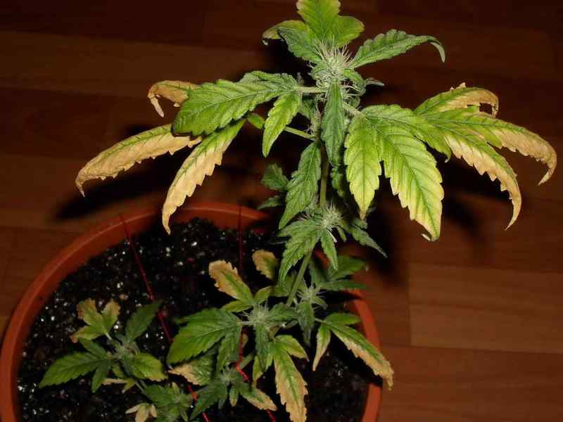 Если листва, преимущественно наиболее отдаленная от корней, вдруг утратила тонус и здоровый блеск, а также начала подкручиваться внутрь, походя на когти, это явный признак того, что растение испытывает сильную жажду. Самое время проверить увлажненность грунта и полить растение. Как правило, после своевременно замеченного и устраненного недолива растение каннабиса достаточно быстро восстанавливается без «потерь». Однако частых засух допускать нельзя, так как регулярность недостатка воды и питательных веществ губит иммунитет и ослабляет растение. Стоит ли ожидать от слабого растения богатого и качественного урожая?